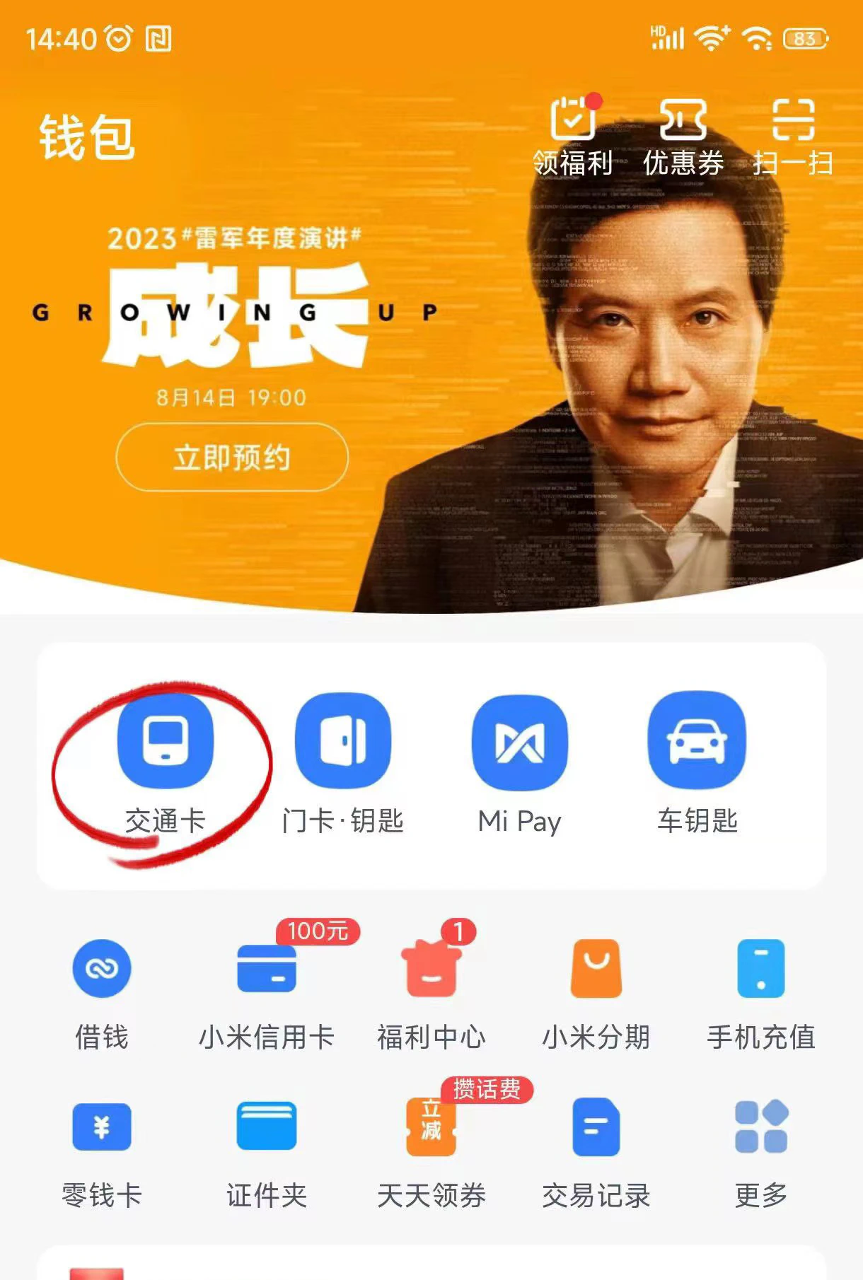 - 方法二:在手机自带的“钱包”APP,加载手机交通卡。以小米为例,打开小米自带的“钱包”APP:
